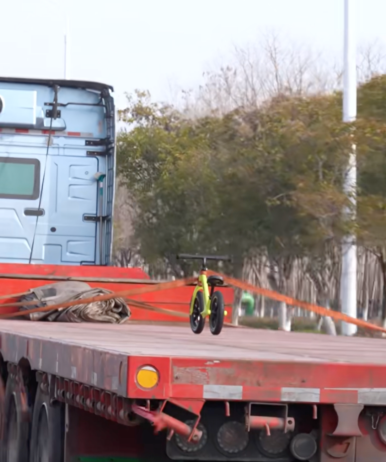 路遇一辆大货车拉着一辆儿童车回家过年,这应该是父亲带给孩子最珍贵的礼物了吧!(@福顺拍车匠)