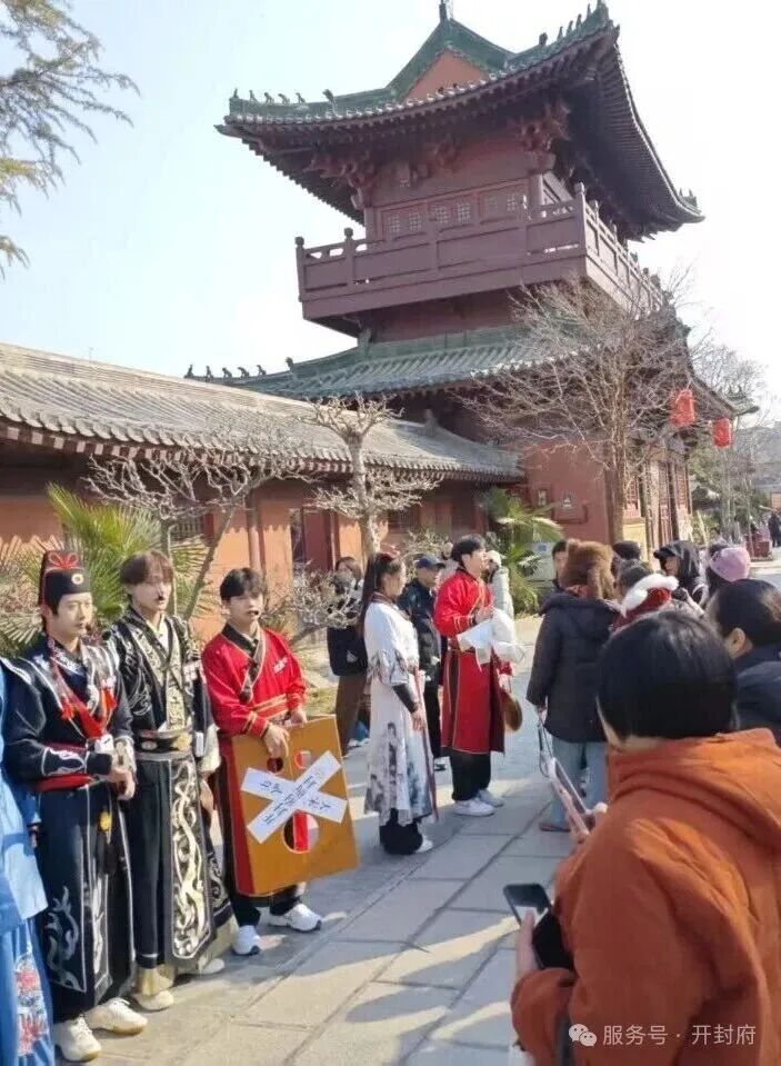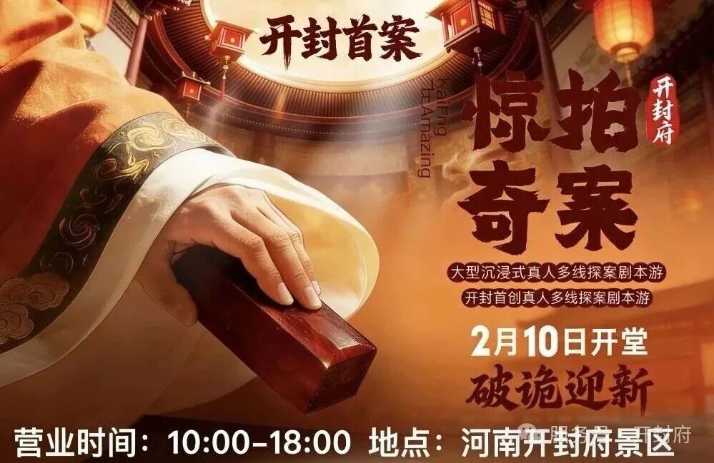作为创新力作,开封府重磅推出沉浸扮玩式真人互动剧本游《开封府拍案惊奇》,打破传统观光模式,将千年府衙文化与新潮互动玩法深度融合,让游客在角色代入中“穿越”大宋,体验断案升官的奇妙旅程。