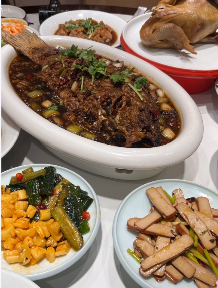 他们家的年夜饭套餐,从1299元到1899元不等,每款都包含了丰富的凉菜和热菜。青椒南湾鱼头,鱼肉鲜嫩,青椒提味,好吃得不得了。还有红焖潢川甲鱼,肉质软烂,汤汁浓郁,吃一口就能感受到那股子家的味道。如果你喜欢素食,那他们家的珍菌小公鸡也是个不错的选择,珍菌鲜美,小公鸡肉质细嫩,搭配在一起,简直美味极了。