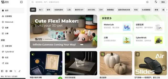 MakerWorld是拓竹科技搭建的原创模型社区,月活用户逼近千万,3D打印爱好者们在这里可以一键手搓手办玩具、收纳神器、工业小配件等等。