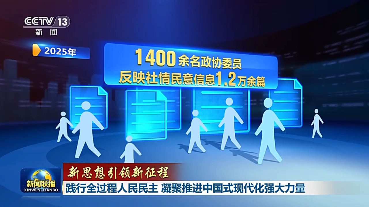 截至2025年底,全国人大常委会法工委共设立60个基层立法联系点,带动省、市两级人大设立联系点7800多个;2025年,1400余名政协委员反映社情民意信息1.2万余篇……各类反映基层民情民意的直通快车,成为密切联系群众的桥梁纽带。