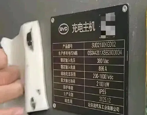 液冷AC-DC柜上的铭牌写的是最大支持2100KW输出,按照笔者的经验通常峰值效率可以做到99%,也就是双枪充电功率肯定能顶到2兆瓦左右了。